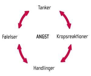 Angst kan opstå og udtrykkes på mange måder. Den består af fire dele, der gensidigt påvirker hinanden.